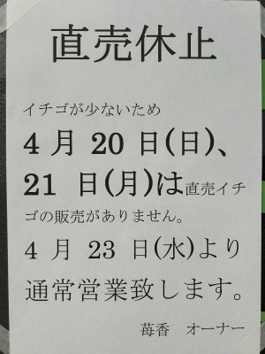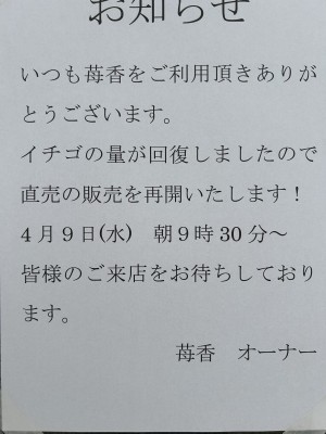 桜の花が咲く頃、朝晩は冷え込みますね! 日中は日差しも差し込み、過ごしやすいです。 さて、今期のいちご栽培栽培はスタートの遅れ時始まり、栽培管理に苦戦しております。 例年ですといち… |