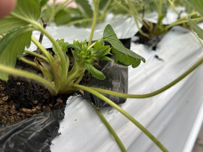 11月になりました。段々と気温も低下し、冬が近づいてきましたね。冬になればいよいよ苺の季節です♪秋の高温と最近の気温低下で生育はやや停滞気味ですが、苗は順調に花を咲かせる準備をしています。昨年と同じような時期に蕾が出てきましたが、昨年より揃って出ています。量についても少しは期待できそうなので、少し安心しています。しかし、急な冷え込みで苗の生育も旺盛ではないので慎重に管理して美味しい苺を皆さんに届けられるように頑張ります!