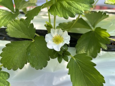 先日、蕾のお話をしましたが、ハウス内を見ていると花が咲いているのを見つけました!蕾の出ている苗も多く、いよいよ本番かなって感じになってきました。昨年はこの頃、蕾の数も少なく不揃いで、たくさんの苺が収穫できるまでに時間がかかり、年内はほとんど販売できませんでした。今年の方がなんとなく順調に販売まで行けそうな気がします。水曜日にはマルハナバチの段取りをしていよいよ交配です。気を緩めずに、これからも管理して美味しい苺を年末には皆様にお届けしたいです。(^O^)/